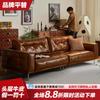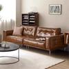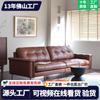 Sofá antigo para sala de estar de apartamento pequeno estilo francês vintage óleo cera de couro simples reta de três lugares caramelo sofá de couro