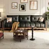 Sofá de couro estilo francês vintage com cera de óleo, madeira maciça, sofá de fileira reta preta de alta qualidade, apartamento pequeno, móveis antigos para casa