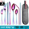 Conjunto de Talheres Portátil de Aço Inoxidável para Fornecimento Transfronteiriço 9 Peças Estilo Camping ao Ar Livre Faca, Garfo, Colher, Hashis e Canudo Estilo Quente