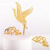 Bolo de aniversário cartão acrílico estilo chinês guindaste dourado Xiangyun guindaste branco mesa de sobremesa de aniversário bolo plug-in