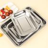 Prato quadrado de aço inoxidável, retangular, não magnético, espesso, para churrasco, peixe grelhado, prato para churrasco, cantina de hotel, prato para cozinhar arroz no vapor