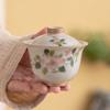 Tender Powder pintado à mão Rose Cover Bowl Cerâmica doméstica única anti-escaldante Tigela de mão Máquina de chá Luz Luxo Kung Fu Novo estilo chinês