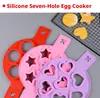 Molde de silicone com sete furos para fritar ovos, molde redondo, em formato de estrela, de coração para fritar ovos, ferramenta doméstica resistente a altas temperaturas para fritar ovos