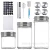 Caixa de armazenamento de especiarias, jarra de vidro selada, jarra grande de material, jarra de tempero, garrafa de tempero, garrafa de vidro pequena
