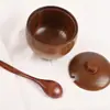 Pote de Condimento de Madeira de Jujuba Utensílio de Cozinha Doméstico Pote de Sal de Madeira Retrô Caixa de Condimento Caixa de Condimento Madeira Maciça com Tampa