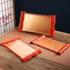 Bandeja de Imitação de Bambu Dourada Vermelha de Espada Dupla / Recipiente para Macarrão Frio em Formato de Bambu Cozinha Japonesa e Coreana Restaurante Sukiyaki Atacado Hotel Adequado