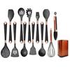 Utensílios de cozinha cabo de madeira estilo europeu panela antiaderente espátula de silicone barril de armazenamento preto de 11 peças conjunto resistente a altas temperaturas