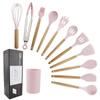 Conjunto de Utensílios de Cozinha de Silicone Rosa com Cabo de Madeira de Faia Transfronteiriço com Balde de Armazenamento Conjunto Novo de 11 Peças para Uso Doméstico