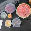 Tampa de silicone de silicone de grau alimentício de 6 peças conjunto multi-funcional fresco Mantendo transparente tampa de tigela redonda stretch filme plástico para atacado