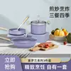 Conjunto de Panelas Domésticas Violeta de Três Peças para Fritar Sopa e Fritar Leite Panela Antiaderente Fogão de Indução Universal Presente Atacado Panela de Ferro