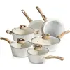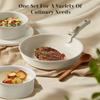 Conjunto de Utensílios de Cozinha Antiaderentes de Aço Carbono na Cor de Aveia com 21 Peças, Tampa de Vidro, Frigideira Plana, Frigideira, Fogão Universal