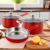 Conjunto de Panelas Antiaderentes Vermelho de 3 Peças - Frigideira, Caçarola e Panela