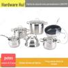 Conjunto de panelas de aço inoxidável, panela de sopa doméstica, leiteira e frigideira, conjunto de seis peças, 12 peças panelas de cozinha