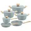 Conjunto de Panelas de Mármore Alumínio Pedra Maifan Panela de Sopa Conjunto Alumínio Fundido Antiaderente Frigideira Wok