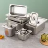 Bacia Retangular de Servir em Aço Inoxidável com Tampa, Recipiente Pequeno para Ingredientes Comercial, Bacia de Servir de Grande Capacidade, Bacia Grande Espessada para Refeição, Atacado