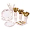 Fabricante Personaliza e Produz Conjunto de Louças Descartáveis para Banquete com Estampa de Bolinhas Hot Stamping Conjunto de Guardanapo, Prato e Copo Descartáveis