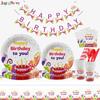 Produção de fábrica aniversário vela bolo terno de festa aniversário das crianças placa de papel descartável copo de papel conjunto de tigela de prato