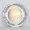 Atacado de Fábrica Personalizado Estampagem a Quente e Prata Futurista Descartável Cor Pura Prato de Papel Festa de Aniversário Jantar Conjunto de Louça