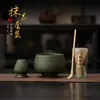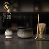 Cerimônia do Chá da Dinastia Song Imitação Tigela Antiga Cerâmica Matcha Conjunto de Quatro Peças Tigela de Chá Batedor de Chá de Cem Peças Suporte Colher de Matcha Ferramentas para Fazer Chá