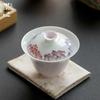 Conjunto de Chá Gaiwan Cerâmico com Flores de Cerejeira Pintadas à Mão para Uso Doméstico