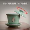 Conjunto de Chá Goyao Três Talentos com Tigela com Tampa e Duas Xícaras, Cerâmica Azul Celadon e Porcelana Branca, Porcelana Ru para Oferenda de Chá com Tampa
