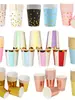 Copo de Papel Estampado a Quente Descartável Espessado Dourado Rosa Listras de Bolinhas Aniversário Festa de Feriado Festa de Casamento Suprimentos para Festa