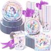 MM316 Balão Arco-Íris Unicórnio Atmosfera Festa de Feriado Talheres 8 Prato de Papel de 4 Peças Toalha de Papel Copo de Papel