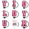 Tampão de Palha Rosa com Letra Inglesa Calibre 8-10mm Plugue de Palha Silicone Cola Macia Decoração de Palha Modelo Quente Amazon