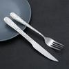 Faca e garfo de aço inoxidável com cabo longo e espesso, de alta qualidade, para restaurante ocidental, hotel, casa, bife, macarrão, sobremesa, frutas