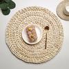 Jogo americano de palha trançada em estilo japonês, novo estilo, jogo americano de couro de milho, jogo americano trançado de três fios, jogo americano de couro de milho, tapete grosso para pote de areia