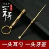 Palito de dente de cobre puro, colher para orelha, ponta dupla integrada em latão, multifuncional, portátil, para frutas, pingente de chave.