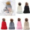 Novo chapéu de lã tricotado com pompom de pele de inverno infantil europeu e americano, protetores de ouvido para bebês, chapéu quente para sair