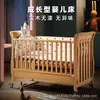 Nova Cama de Bebê Multifuncional Estilo Europeu Emendável, Cama Simples de Madeira Maciça Sem Pintura, Berço Ajustável de Rodinhas em Madeira de Faia