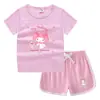 2023 Verão Infantil em torno do pescoço T-shirt hot pants coreano casual assentamento camisa absorvente de suor doces terno de camiseta infantil