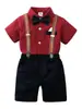 Vestuário infantil transfronteiriço por atacado verão novos suspensórios terno infantil de duas peças bebê cavalheiro britânico menino roupas de verão
