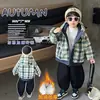 Jaqueta de veludo infantil outono e inverno 2024 novos meninos xadrez lã de cordeiro inverno moda bebê engrossado casaco de algodão