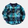 Exportação da Fábrica da Amazon Roupas Infantis 2022 Estilo Europeu e Americano Jaqueta Azul Xadrez de Manga Longa para Meninos Pequenos