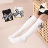 Meias infantis primavera e outono algodão penteado com diamante pequeno estilo Chanel preto e branco treliça meias de comprimento médio para bebês meias para meninas meias de estudante