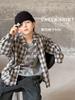 Camisa Infantil de Flanela Xadrez Manga Longa Primavera e Outono Estilo Coreano Pequeno e Médio Meninos Moda Top Soltinho Jaqueta Pequena Tendência