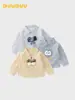 Camisa Infantil Top para Bebê 2025 Primavera e Outono Novo Estilo Meninos Bebê Tendência Desenho Animado Letra Manga Longa Camisa