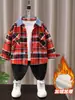 Camisa xadrez infantil 2024 nova camisa forrada de lã para meninos outono e inverno casaco de inverno coreano maré