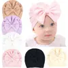Europeu e Americano transfronteiriço novo boné de pneu infantil recém-nascido cor sólida tampa elástica pulôver bebê bump bow chapéu indiano