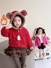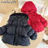 Roupa de Festa de Inverno para Meninas 2026 Novo Estilo Roupas Festivas Vermelhas de Ano Novo Jaqueta de Algodão com Capuz Forrado de Lã
