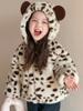 Casaco com Capuz de Pelo Estampado de Leopardo para Meninas Estilo Coreano Celebridade da Internet 2026 Novo Comércio Exterior Inverno Estiloso Jaqueta de Algodão Falso Pelo Roupas Infantis