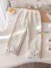 Calça Boca de Sino Bordada Desenho Animado Estilo Coreano com Veludo e Tecido Espesso de Perna Larga para Bebês Meninas Usarem no Inverno