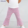 26 Primavera Outono Novos Calças Flare Estilo Coreano para Meninas Bebê Algodão Elástico ins Camada Base Casual Infantil Pequeno Calças Longas Cintura Alta a