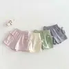 Shorts Casuais de Verão para Meninas com Laço, Cor Sólida, Calça Casual Soltinha, Bolsos Duplos, Hot Pants, Roupas de Bebê, Novo Estilo Versátil