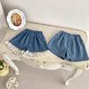 Shorts jeans de verão Cross-Border para meninas, com babados duplos e cintura elástica, perfeitos para crianças pequenas. Saia infantil.
