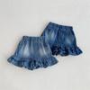 Shorts jeans confortáveis com babados, estilo coreano, para bebês, primavera, para meninas