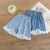 Shorts de Menina Laço Renda Jeans 2024 Verão Novo Roupa Infantil Moda Calça Cinco Quartos Estilo Doce